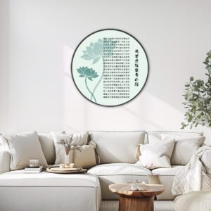 Heart Sutra (Light Green) – Large Round Framed Canvas Wall Art