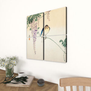 Wisteria and Swallow (ca. 1900) by Ohara Koson – 4 Panels Square Canvas Wall Art