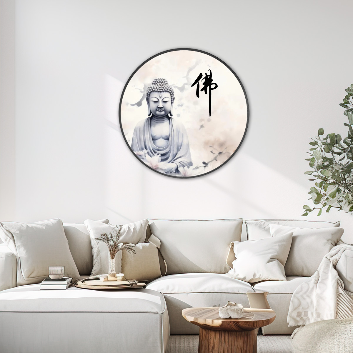 Buddha 1 (32″ Round Framed Canvas Wall Art)