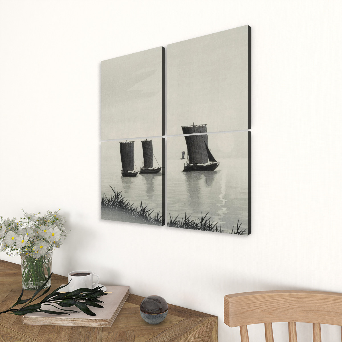 Fishing boats (1900 - 1936) by Ohara Koson (1877-1945) - 4 Panels Square Canvas Wall ArtFishing boats (1900 – 1936) by Ohara Koson (1877-1945) – 4 Panels Square Canvas Wall Art