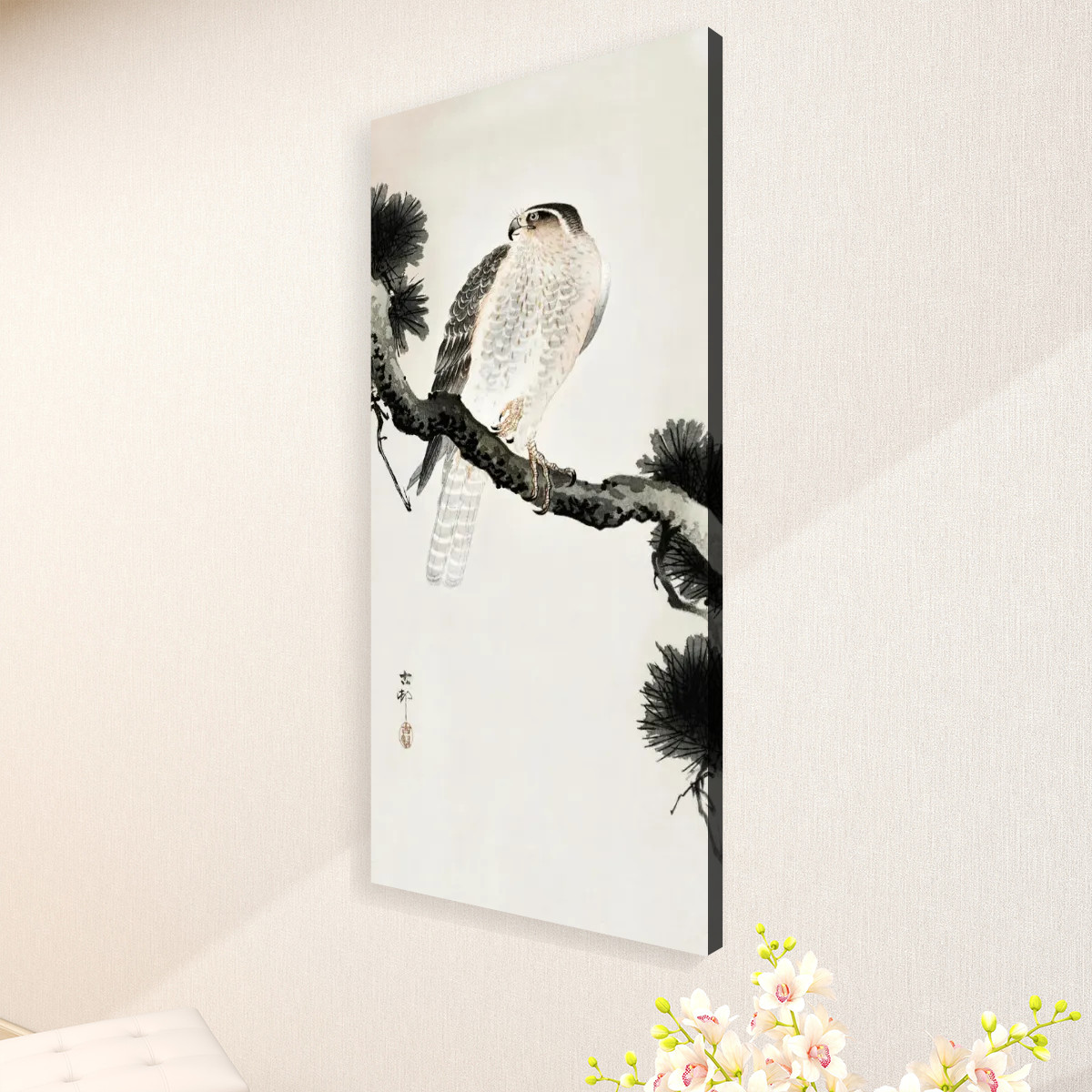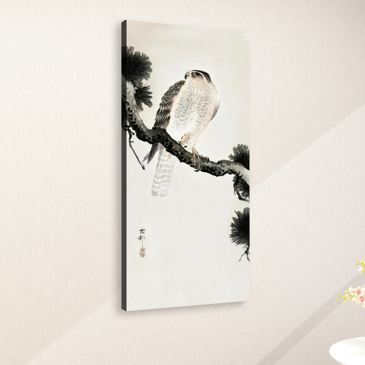 Hawk on pine branch (1900 – 1930) by Ohara Koson (1877-1945) – Large Canvas Wall Art (1:2)