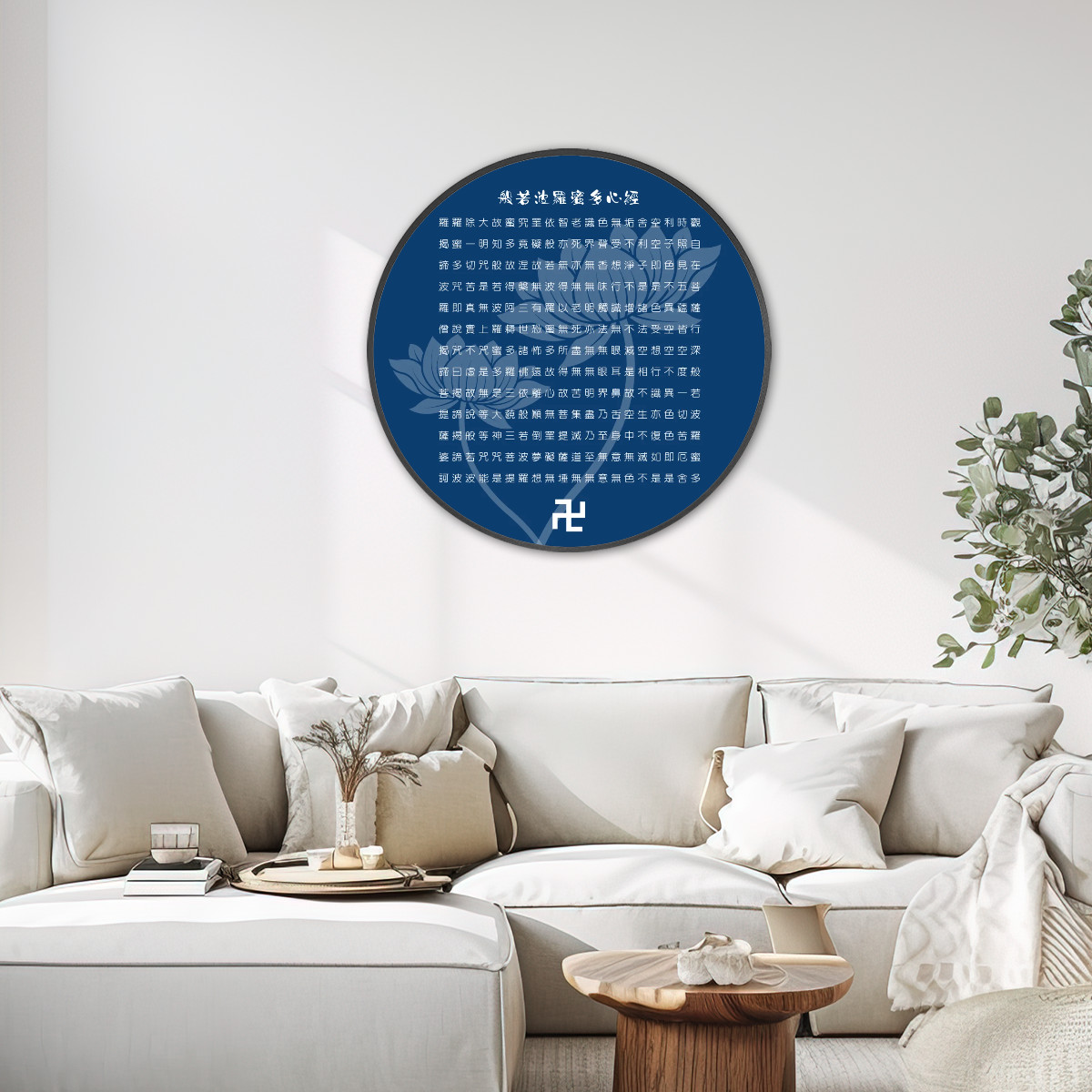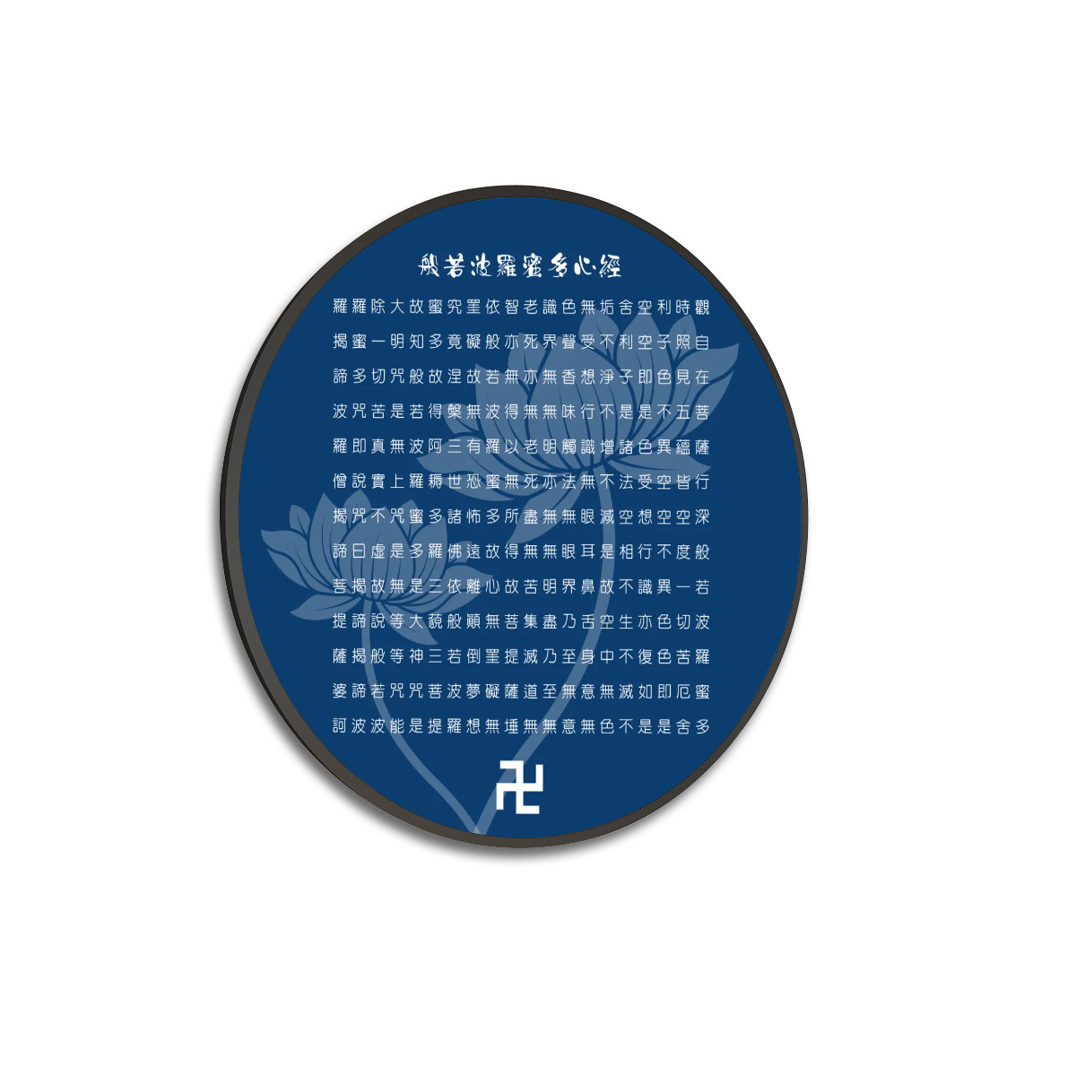 Heart Sutra (Blue) - Large Round Framed Canvas Wall ArtHeart Sutra (Blue) – Large Round Framed Canvas Wall Art