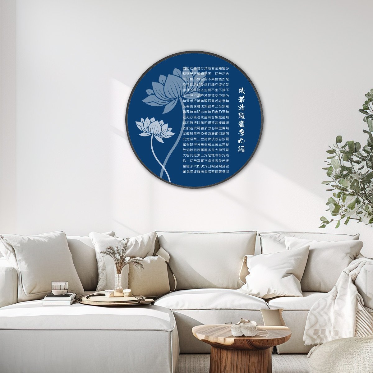 Heart Sutra (Blue) - Large Round Framed Canvas Wall ArtHeart Sutra (Blue) – Large Round Framed Canvas Wall Art