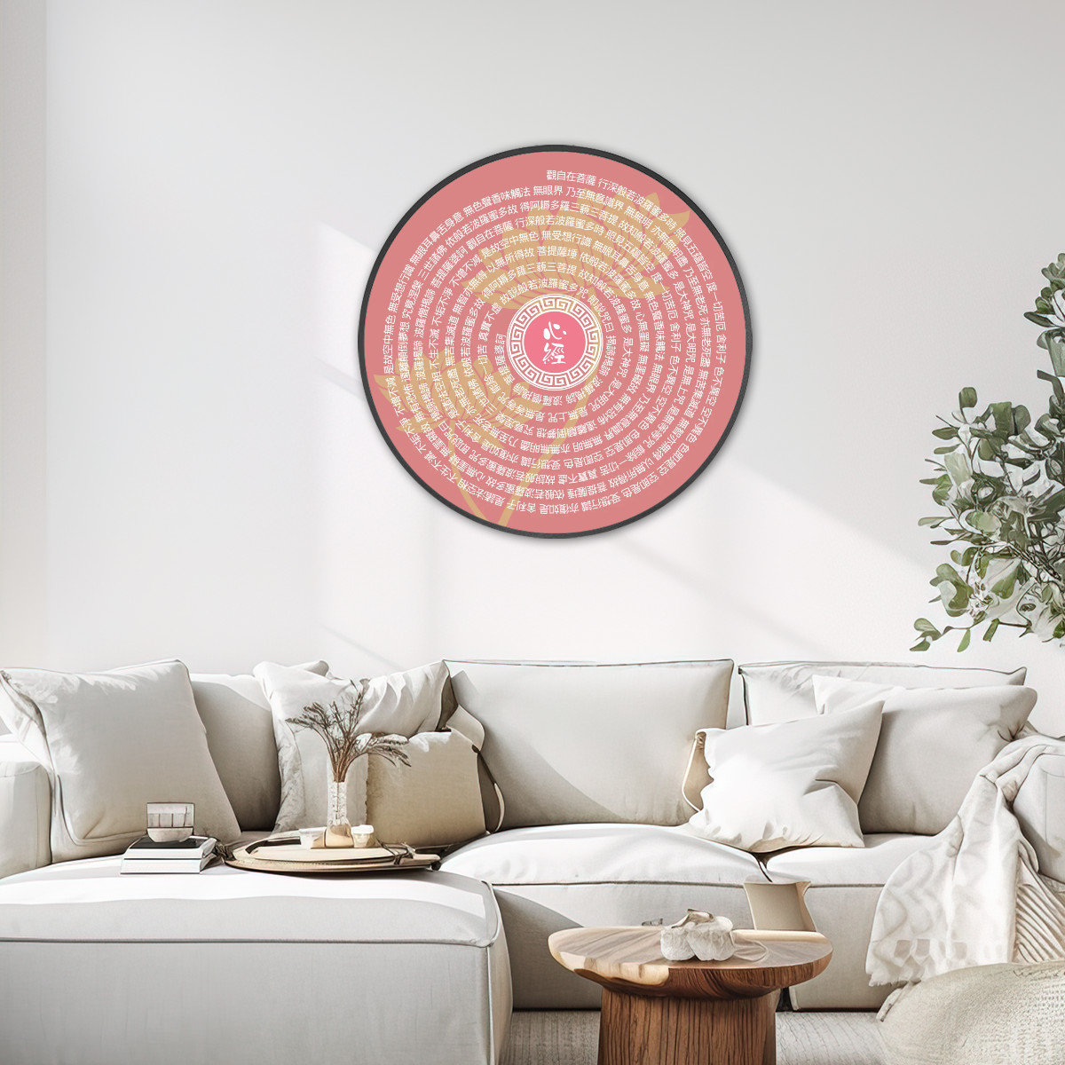Heart Sutra (Pink) - Large Round Framed Canvas Wall ArtHeart Sutra (Pink) – Large Round Framed Canvas Wall Art
