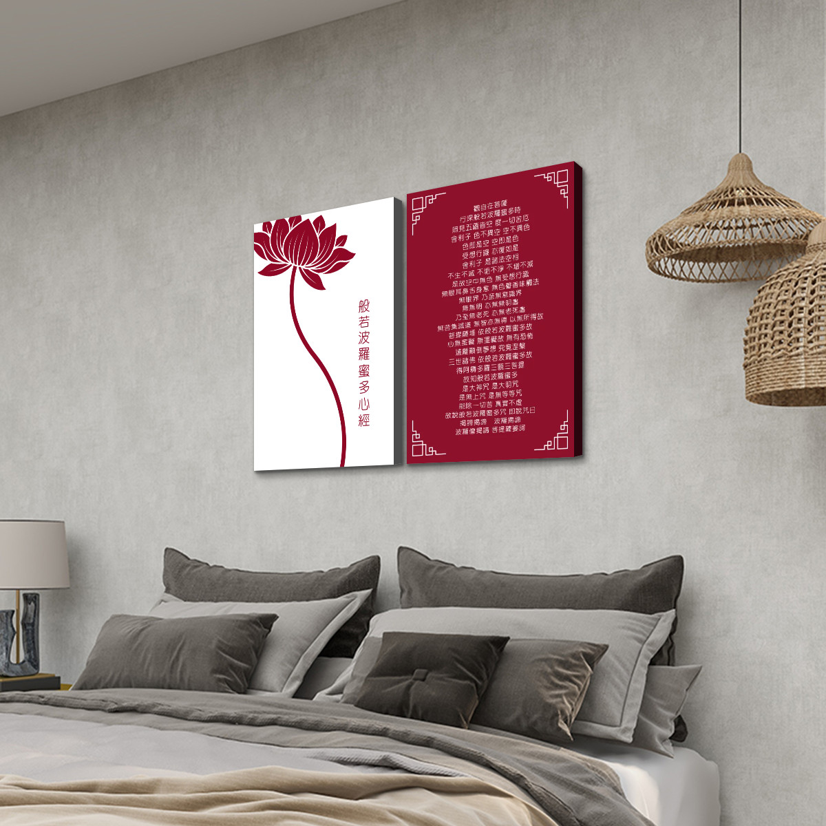 Heart Sutra (Red/White) – 2 Panels Canvas Wall Art (24”x36”)