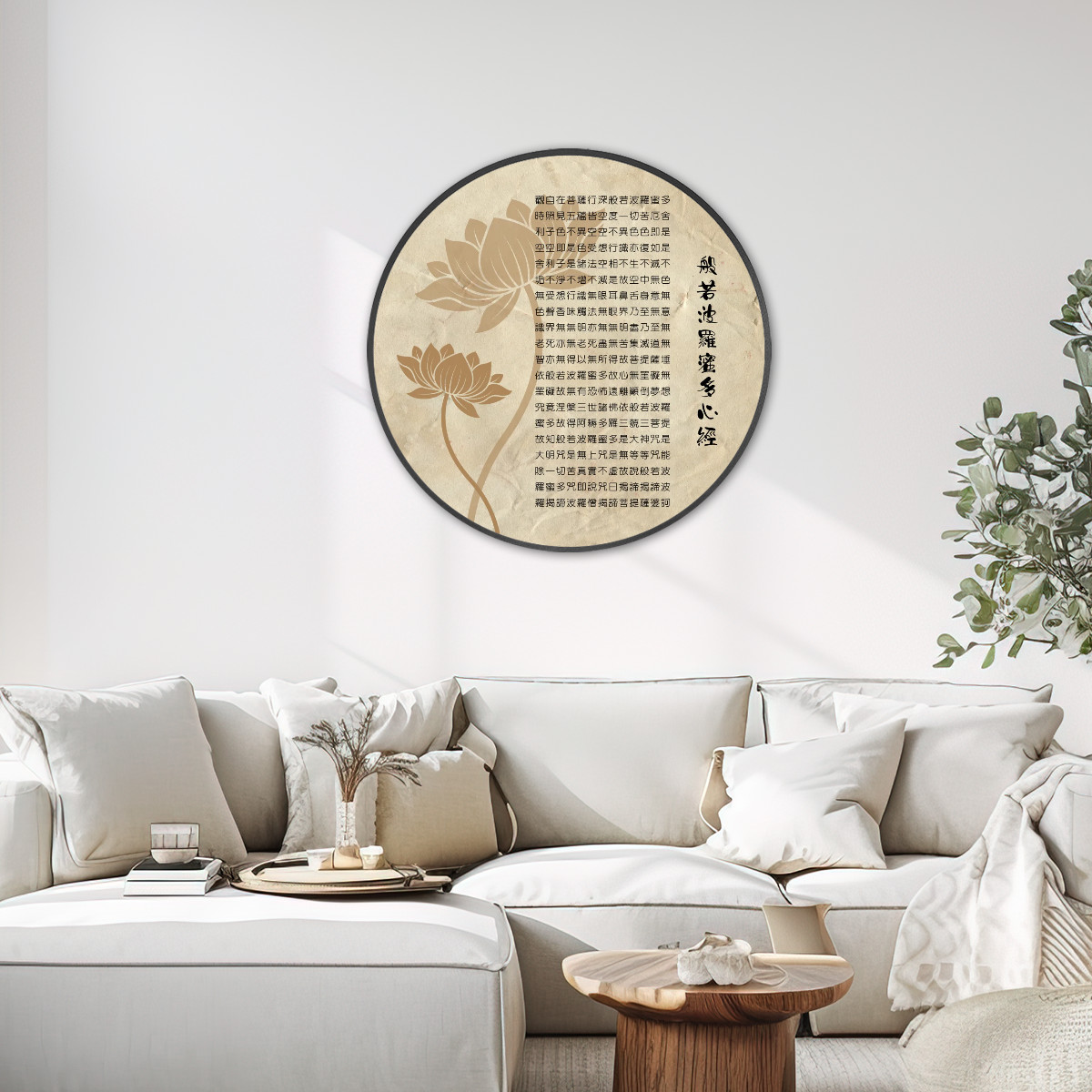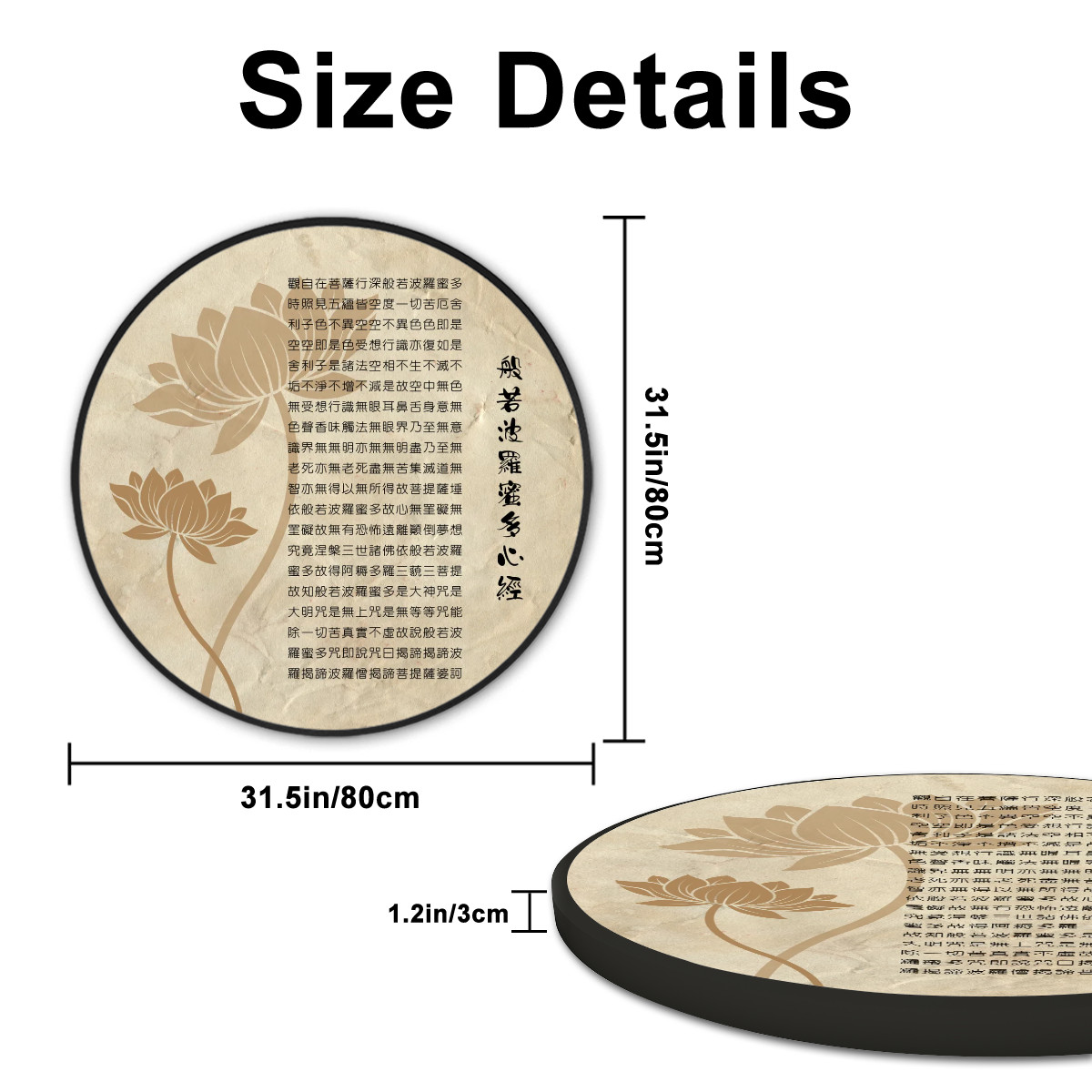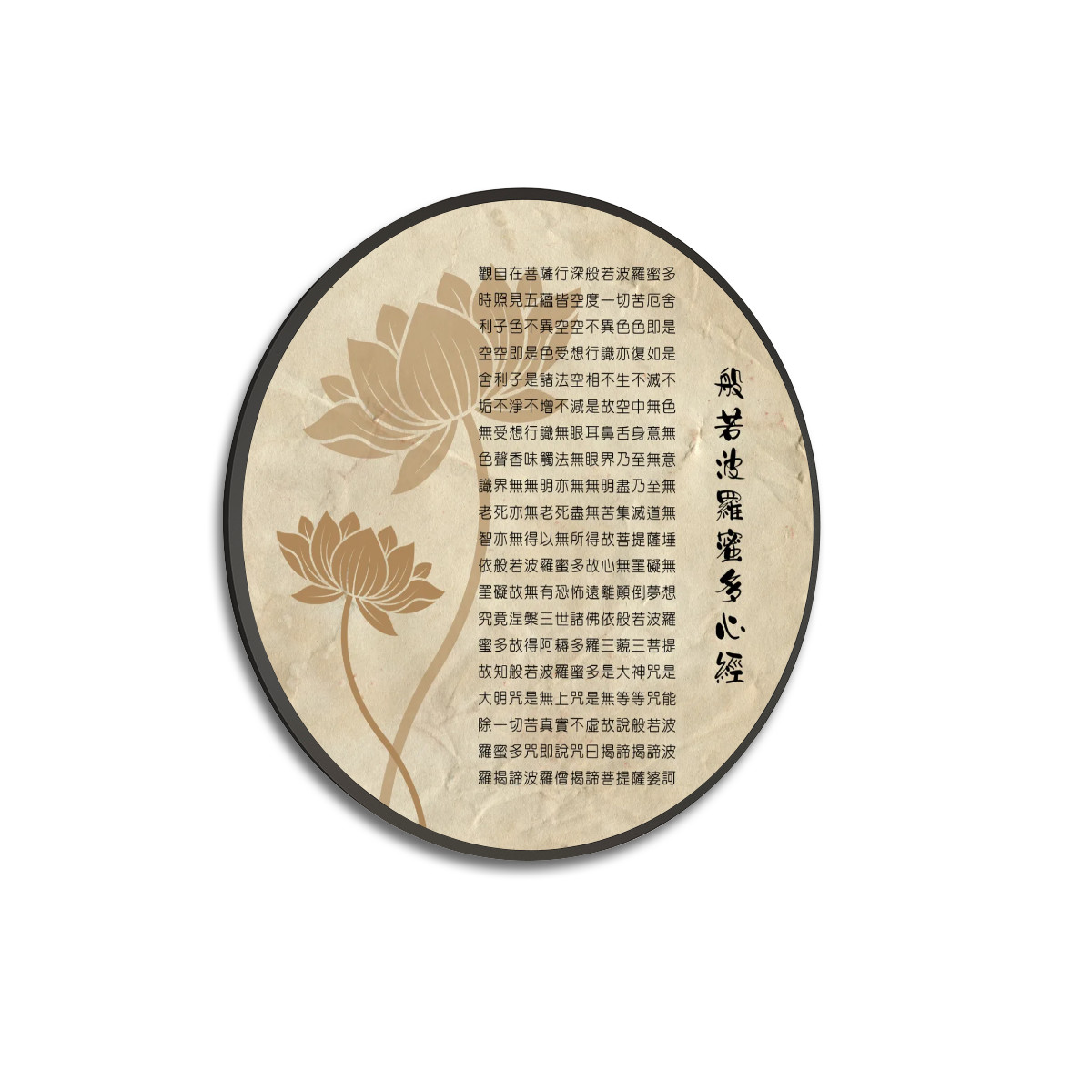 Heart Sutra (Vintage Look) - Large Round Framed Canvas Wall ArtHeart Sutra (Vintage Look) – Large Round Framed Canvas Wall Art