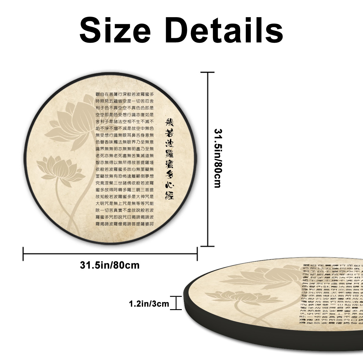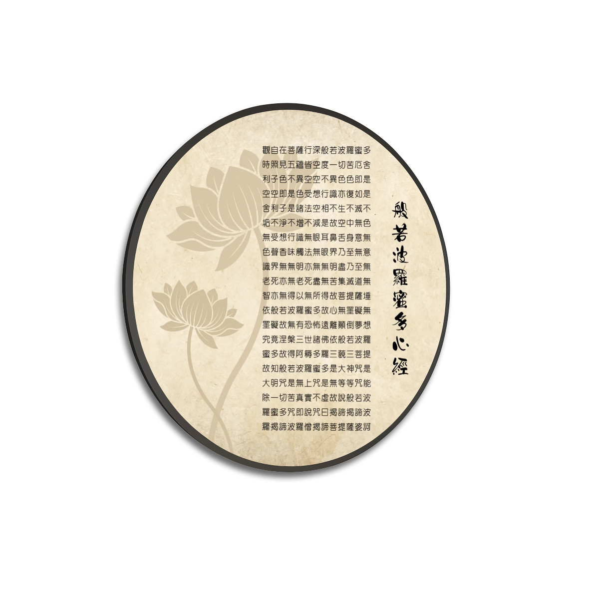 Heart Sutra (Vintage Look) - Large Round Framed Canvas Wall ArtHeart Sutra (Vintage Look) – Large Round Framed Canvas Wall Art
