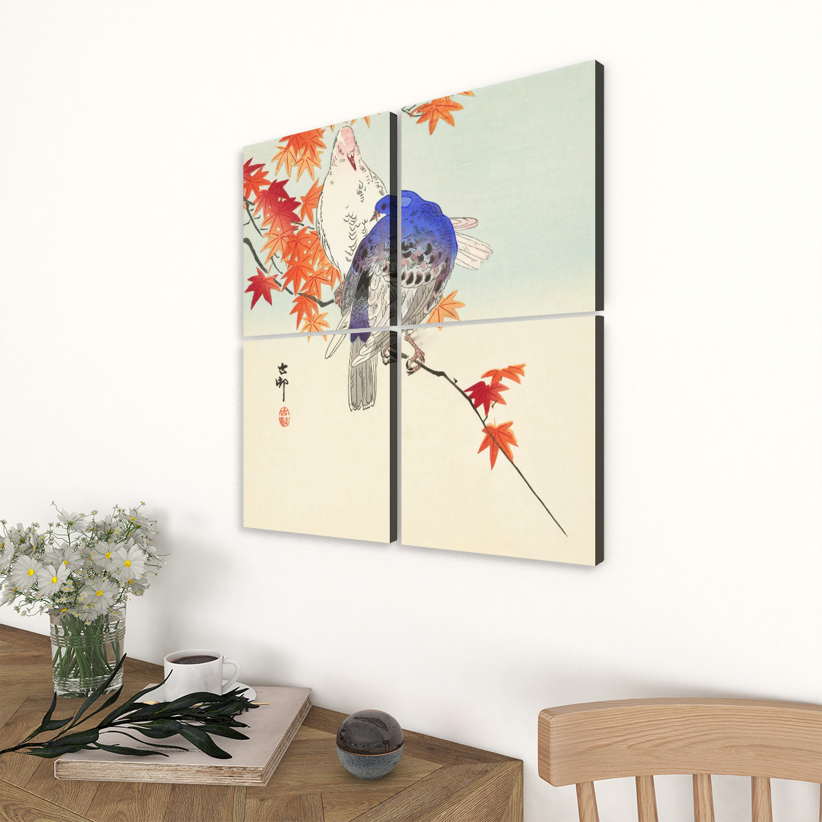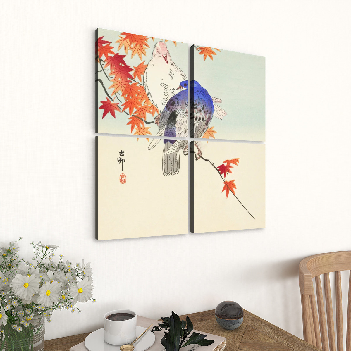 Two pigeons on autumn branch (1900 - 1936) by Ohara Koson (1877-1945) - 4 Panels Square Canvas Wall ArtTwo pigeons on autumn branch (1900 – 1936) by Ohara Koson (1877-1945) – 4 Panels Square Canvas Wall Art