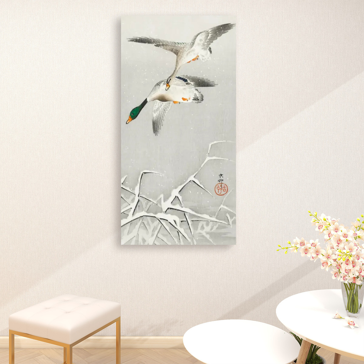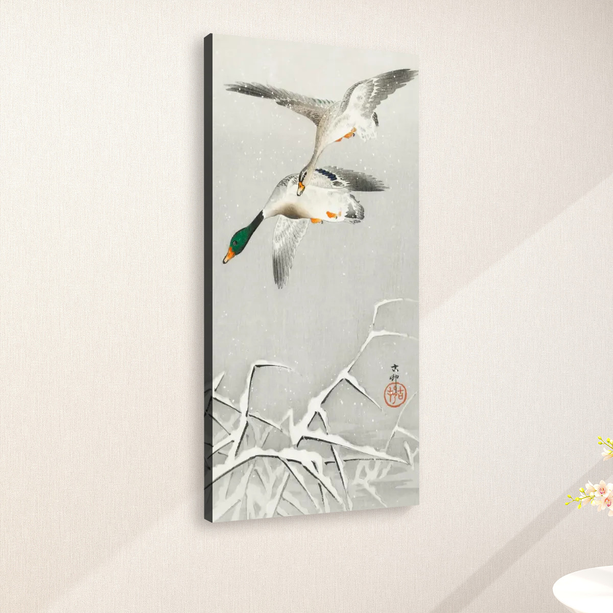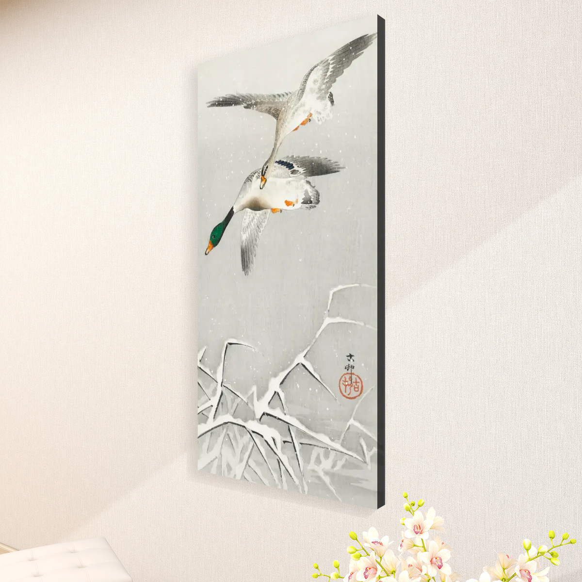 Two wild ducks in flight (1900 - 1936) by Ohara Koson (1877-1945) - Large Canvas Wall Art (1:2)Two wild ducks in flight (1900 – 1936) by Ohara Koson (1877-1945) – Large Canvas Wall Art (1:2)
